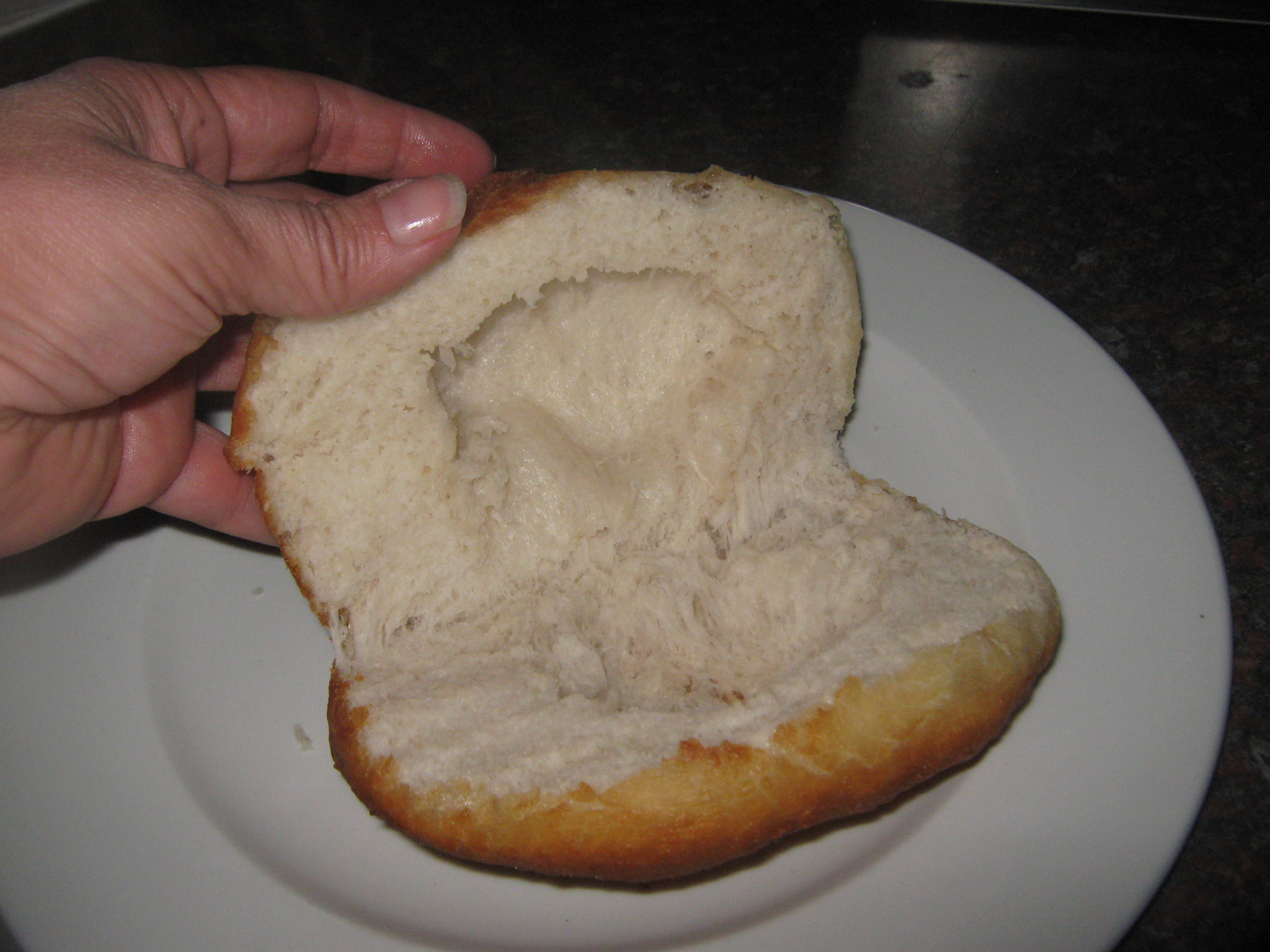 Die broodjie het ek vir 1 uur laat rys. Sien daar is geen verskil tussen die brood wat dadelik gebak is en die een wat gerys  het nie