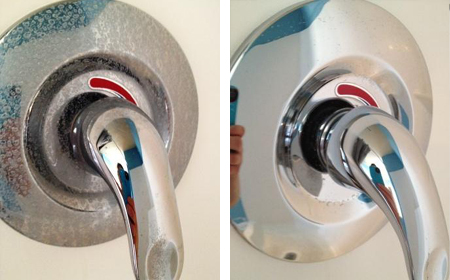 OM AANGEPAKTE KALK EN VUILHEID AF TE HAAL VAN KRANE IN KOMBUIS EN BADKAMER