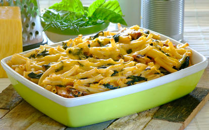 Strooi kaas oor bak +- 40 min tot mooi goudbruin en gaar.