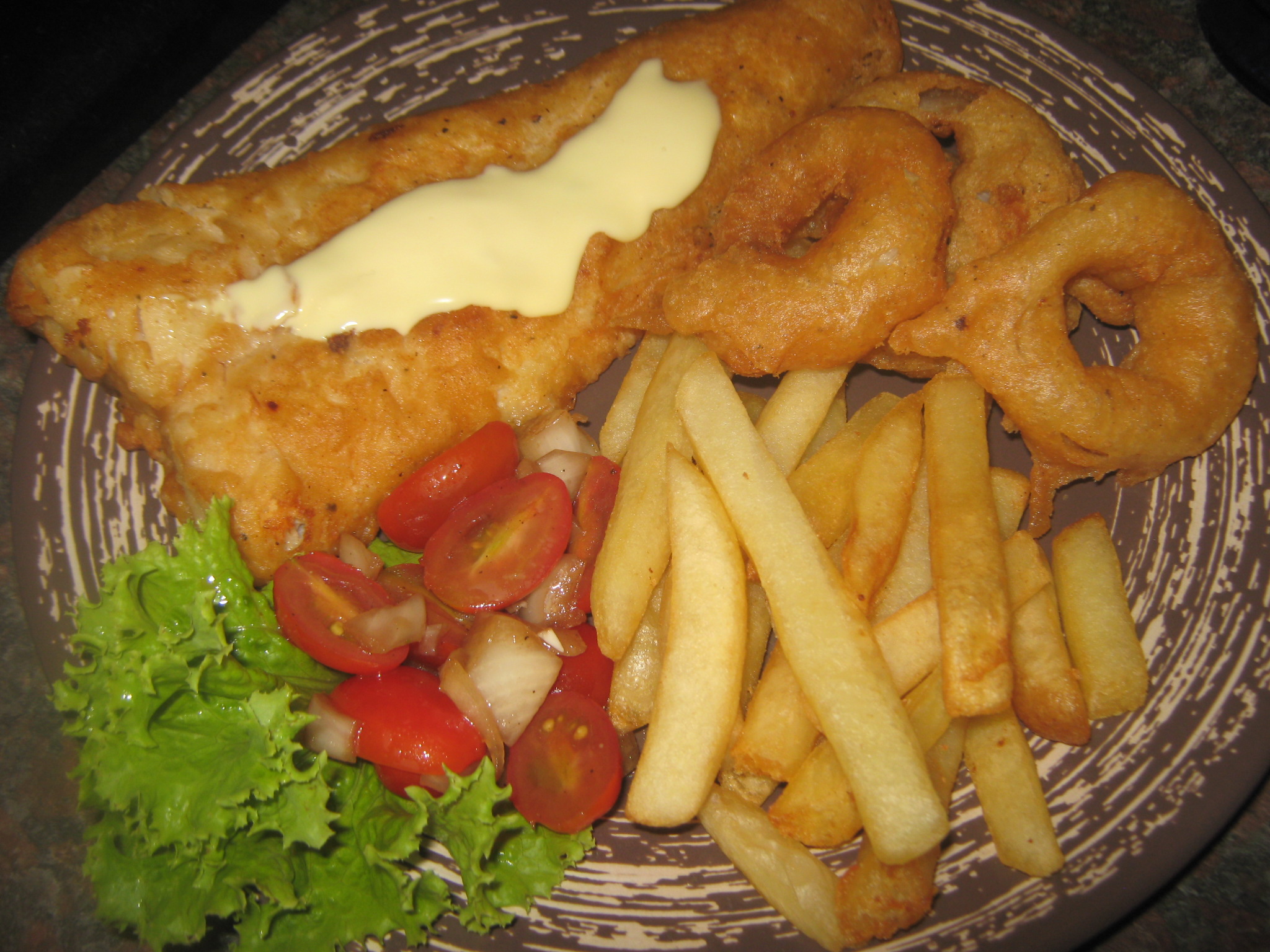 Maak 1 pakkie vis gaar en vlok. Maak volgende sous om oor te gooi: