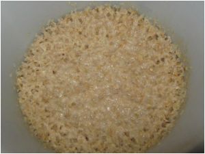 die bak in die mikrogolf vir 30 sekondes, maak oop en roer, weer terug vir 30