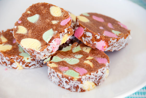 Klop die mengsel met ’n elektriese klitser vir sowat drie tot vyf minute totdat dit dik en romerig is. (Hou op en gooi dit uit sodra die mengsel begin stol.) Gooi dit in ’n gesmeerde bakplaat en laat dit effens afkoel voor jy dit in klein vierkante sny