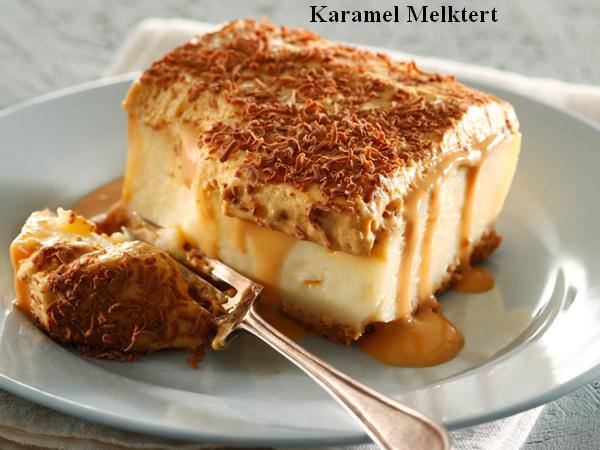Ek maak myne sommer in ‘n pyrex bak en gooi die sous oor en smeer dan die kondensmelk oor en room. Sny blokke en bedien