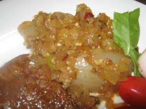 Gestoomde uie saam met braaivleis – baie baie lekker