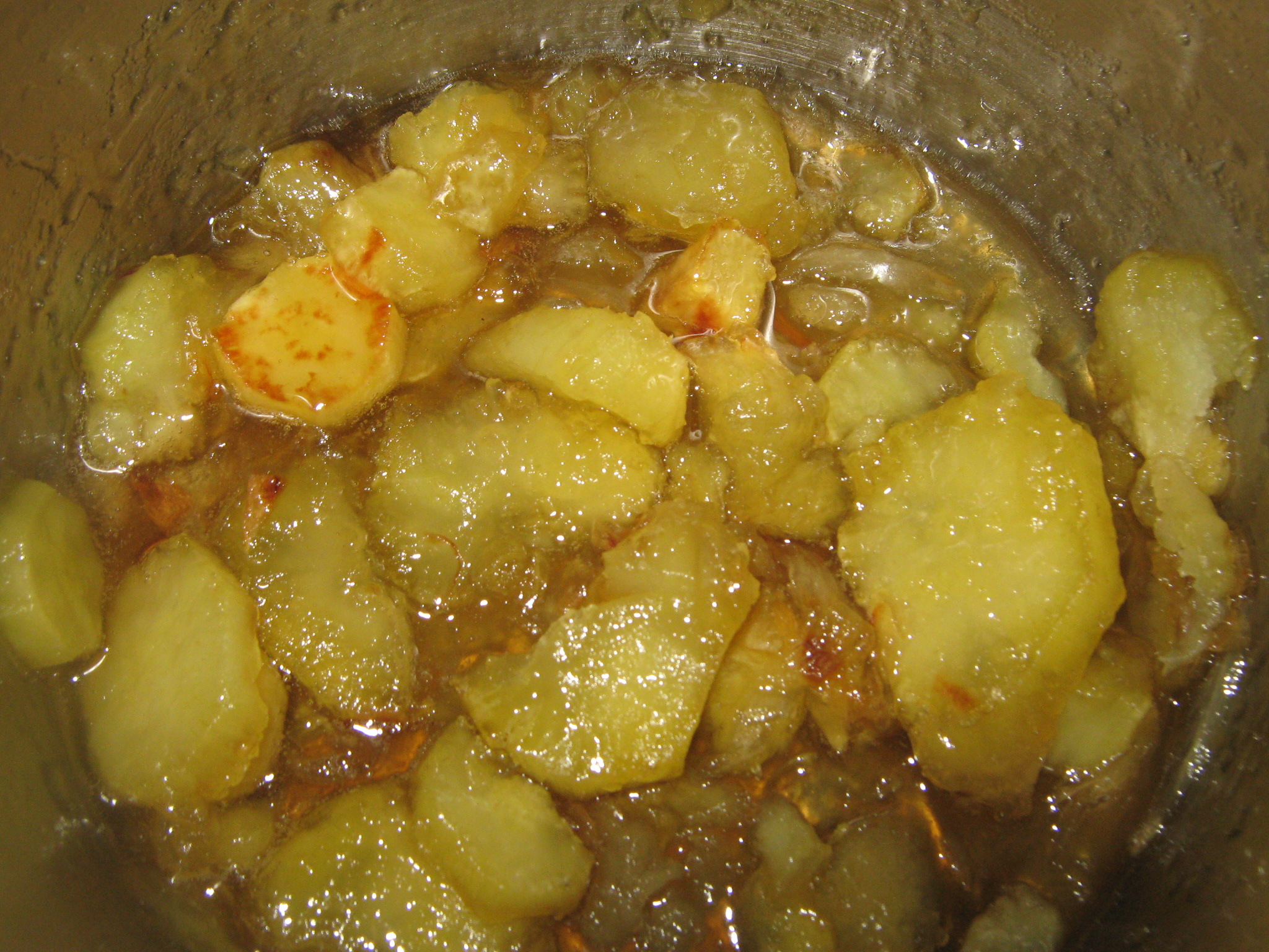 Strooi anys oor, sit die deksel op en stowe tot die patats deurskynend is.