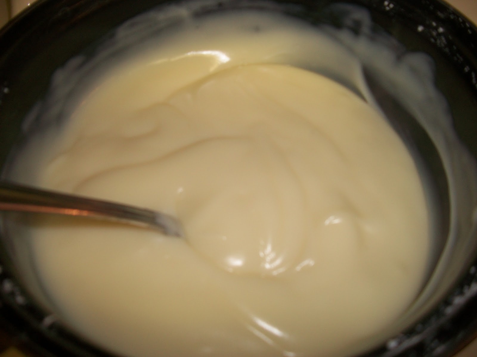 5 e mielieblom ( “Maizena”) ; 5 e suiker, 2 k melk; halwe teelepeltjie elk van vanieje en amandelgeursel. Meng die mielieblom en suiker goed en maak aan met ‘n halwe koppie koue melk. Kook terselfdertyd die ander 1 en ‘n halwe koppie melk. Roer die mengsel in die kokende melk ( ‘n draad -eierklitser maak dit maklik). Haal van die stoof af en gooi die geursel by. Laat afkoel en geniet met gestoofde of vars vrugte.