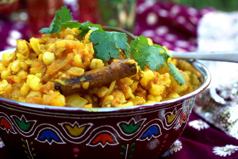 Plaas die hoenderdye in ’n bak. Meng al die marinade-bestanddele saam en gooi oor hoender. Maak die bak toe met kleefplastiek en plaas in die yskas vir 2 – 3 uur. Haal dan die dye uit die bak en probeer soveel as moontlik van die marinade afkry – hou dit eenkant. Verhit die sonneblomolie in ’n pan en braai die hoender vir so 10 minute tot mooi bruin. Kook die rys vir 10 minute en dreineer. Kook die lensies vir 20 minute en dreineer. Verhit jou oond tot 180 °C. Verhit die 15 ml sonneblomolie en braai die uie tot sag en bruin. Gebruik ’n kasserol en pak al die bestanddele in lae daarin: Begin met ’n laag rys, dan lensies, dan hoender en van die marinade, dan die rou aartappels en die uie. Herhaal tot al die bestanddele gebruik is. Gooi die opgeloste borrie oor. Maak die kasserol toe met tinfoelie en plaas die deksel op. Plaas in die warm oond en bak vir minstens 1 uur en 20 minute. Maak seker die aartappels en hoender is gaar. Sit voor saam met hardgekookte eiers.